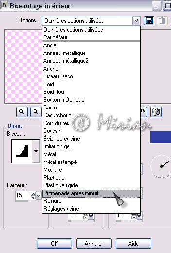 Faire: Effet / Effet 3 d / Biseautage intérieur