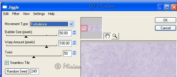 Turbulance : 50 /100 / 50 avec Seamless Tile coché / Random sed 249
